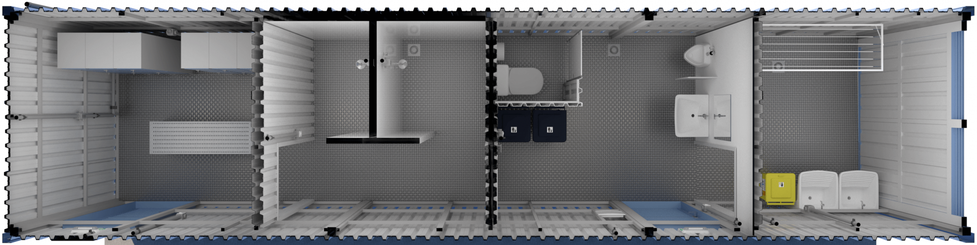 Utilização: Vestiário para o trabalhador, com lavanderia para descontaminar suas roupas de aplicação de produtos químicos (agrotóxicos, venenos, herbicidas, etc) sendo todos os cômodos separados conforme a Norma Regulamentadora NR-31.